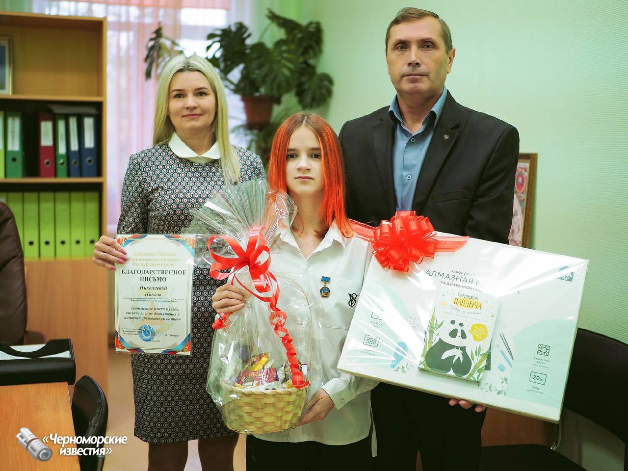 ⭐️В ходе общешкольной еженедельной линейки глава администрации Черноморского района Республики Крым Писарева Наталья Сергеевна поздравила Николь со столь значимой победой и вручила ей благодарственное письмо за высокие показатели в учебе и активную жизненную позицию, а также памятные подарки.